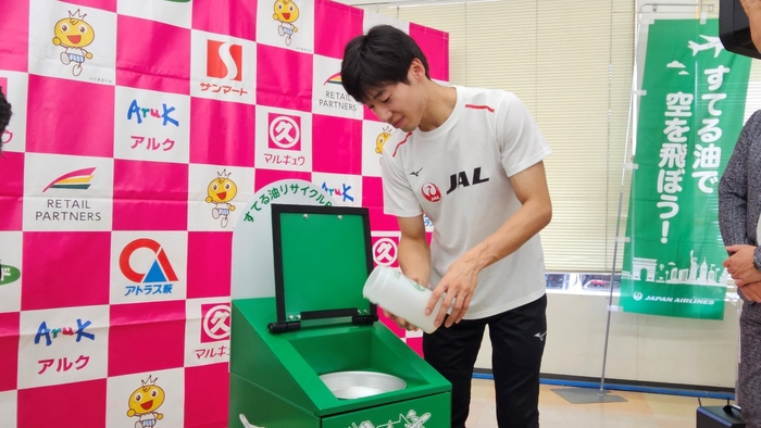 この度、株式会社丸久(本社:防府市/代表取締役社長田中康男)は、岩国市の協力のもと、日本航空株式会社(本社:東京都品川区、代表取締役社長:鳥取三津子、以下「JAL」)と連携し、弊社が運営する岩国市内のスーパーマーケット4店舗において、家庭から出る廃食油の回収ボックスを設置し、回収を開始しました。