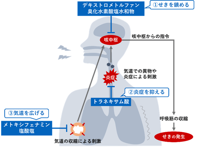 - のどの痛みを伴うせきに“3つの作用”でアプローチ