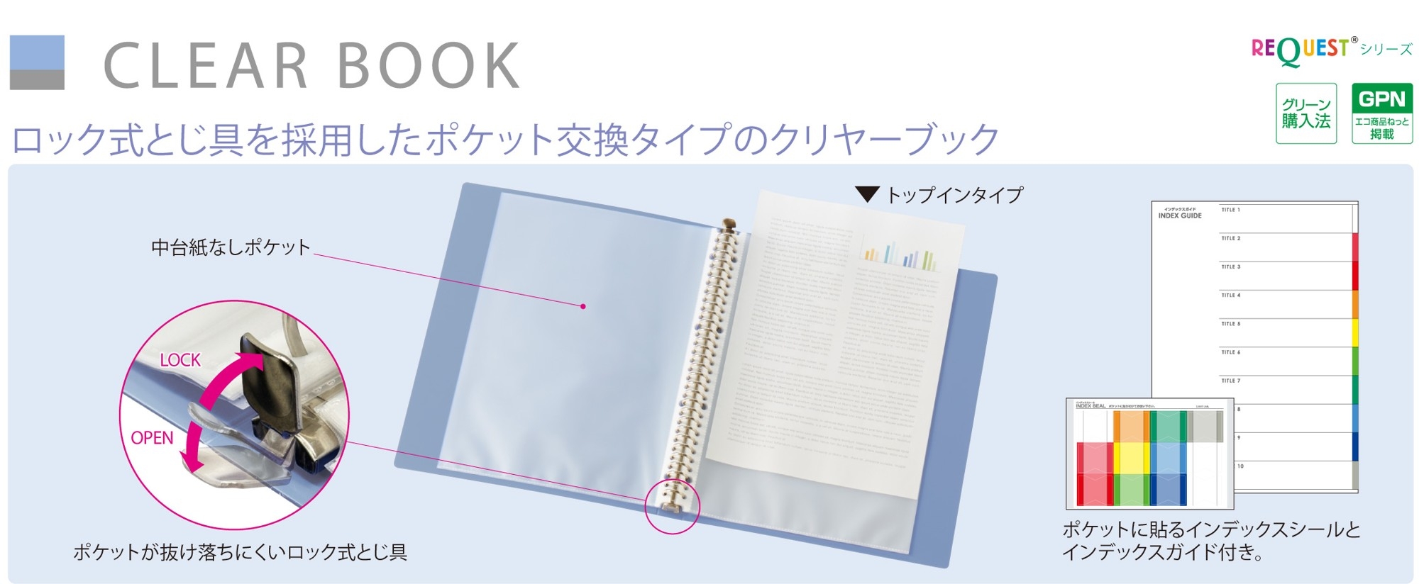 クリヤーブック<ポケット交換タイプ>とD型リングファイルの新色「水色」を発売