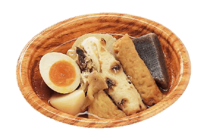 具材を煮炊きする濃厚なつゆと、スープ感覚で飲める上品なつゆを2種類使用し、つゆだく・定番の大根・たまごなどに加え、近畿で特に人気の牛すじやじゃがいも等8品目を選定。スープ感覚でもお召し上がりいただけるおでんです。ぜひお試しください!
