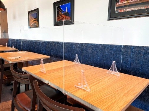 - ブッフェレストランでは飛沫感染対策ボードやビニール手袋の設置しております。
