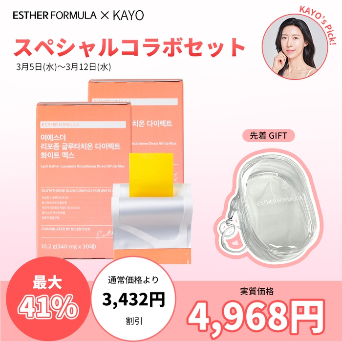 このたび「エスターフォーミュラ」が2025年2月28日(金)から3月12日(水)に開催されるQoo10「メガ割り」に参加いたします。4回目となるインフルエンサーKAYOさんとのコラボセットをはじめ、「メガ割り」でしか購入できない特典を揃えていますので、ぜひこの機会にお買い求めください。