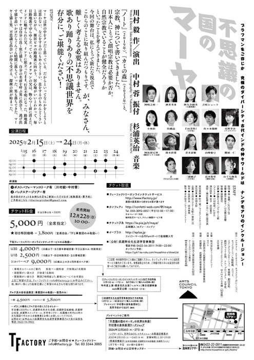 ティーファクトリー主催、『不思議の国のマーヤ』が2025年2月15日 (土) 〜 2025年2月24日 (月・祝)に吉祥寺シアター(東京都 武蔵野市 吉祥寺本町 1-33-22)にて上演されます。