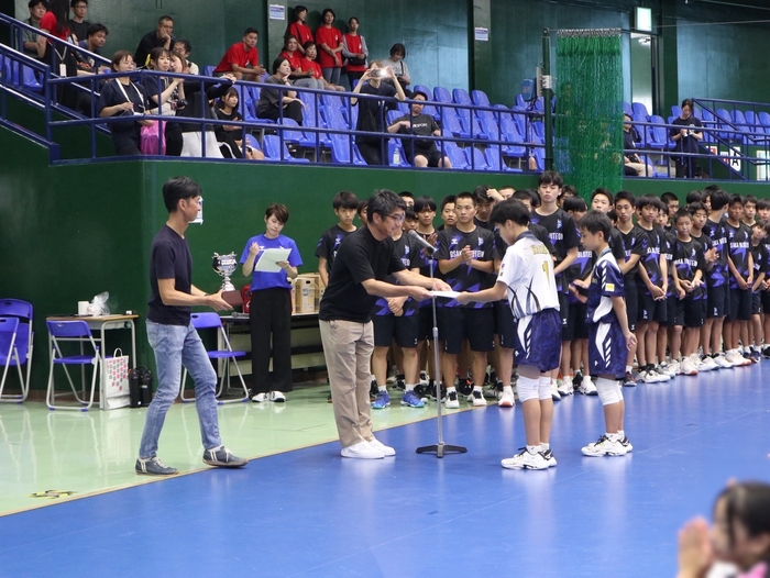 また、京阪ホールディングス株式会社から参加者全員への「第1回おけいはん杯」の開催を記念したTシャツや京阪電車・大阪ブルテオンコラボグッズが配付され、チームで最も活躍したMIP選手には大阪ブルテオンの2025-26シーズンのレプリカユニフォームに本人の名前と背番号が入った特製ユニフォームが今後贈呈される予定です。さらに各チームには株式会社ミカサ協力のもと大会記念ボールも進呈されました。その他、本大会の総合優勝チームには、副賞として大阪ブルテオンのホームゲームで開催される「京阪コラボデー」での始球式への登壇権が授与されました。