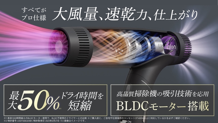「誰もが毎日使いたくなる、使いやすさと高性能を両立したドライヤーを」という想いから誕生した既存モデルは、多くの方にご好評をいただきました。今回、より洗練された印象とユニセックスな使いやすさを追求し、どんなライフスタイルにもなじむ 黒色モデル を新たに開発。無駄をそぎ落としたシンプルな操作性やコード断線防止カバー、オートクリーン機能、高耐久モーターを搭載し、長く安心して使える一台に仕上げました。