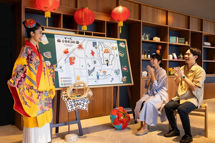 知られざる那覇を満喫する都市観光ホテル「OMO5(おもふぁいぶ)沖縄那覇 by 星野リゾート」は、2021年11月1日から通年で、今も楽しい首里城へ、で~じ*1!行きたくなる「首里城講座」を実施します。この講座は、首里城の魅力を深く知ることで首里城へ行きたくなり、併せて周辺観光も楽しくなる講座です。OMOのスタッフが、首里城で働く方々に聞いた情報や、地元の方々の首里城への想い、またお勧めの写真スポットやお店などを、独自の切り口で紹介します。「首里城クイズ」で講座の復習をしたり、学んだことを書き込んでオリジナル「首里城周辺マップ」を完成させたりと、首里城に関して楽しく理解を深めていきます。