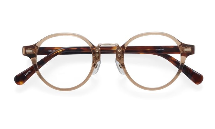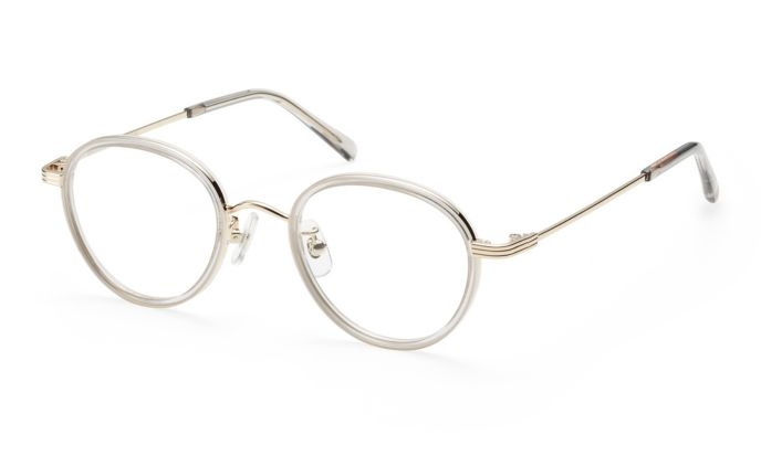 ラウンドシェイプのコンビネーションフレーム。ブリッジをメタルパーツにすることで鼻周りがスッキリして見えクリーンな印象に仕上げました。