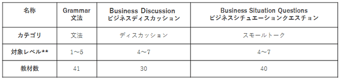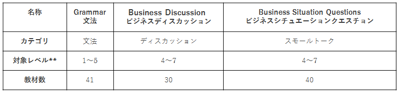 人にまつわるデータを活用し、グローバルに活躍する人々を生み出す株式会社レアジョブ(以下、レアジョブ)は、オンライン英会話サービス「レアジョブ英会話」にて、新教材『文法 Grammar』『ビジネスディスカッション Business Discussion』『ビジネスシチュエーションクエスチョン Business Situation Questions』の提供を開始しました。