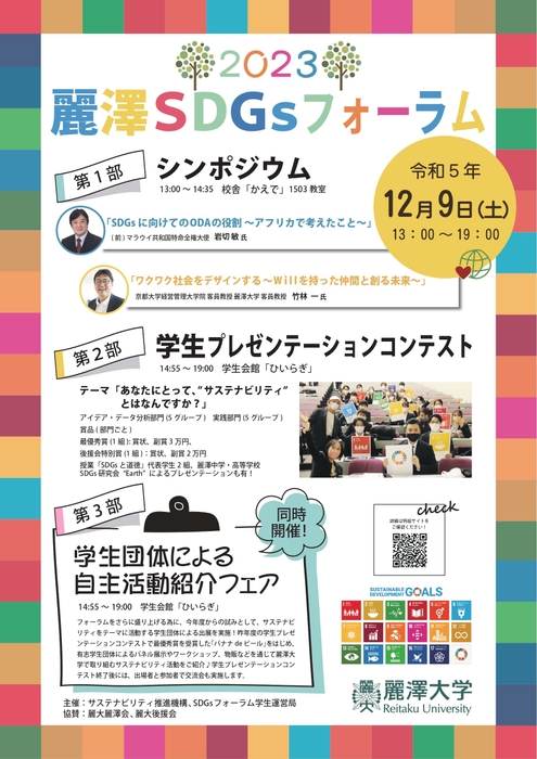 麗澤大学(千葉県柏市/学長:徳永澄憲)は、12月9日(土)に「麗澤SDGsフォーラム2023」を本学キャンパスで開催します。