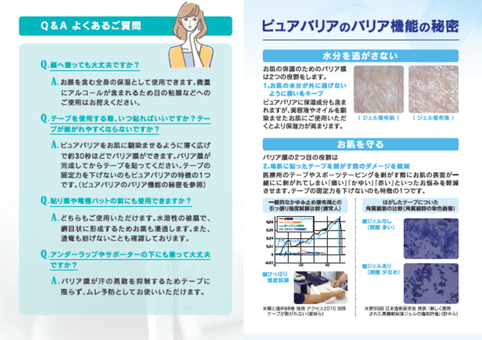 お肌に薄いヴェールを形成することでテーピングや湿布剤・サポーターなどからお肌を守ります