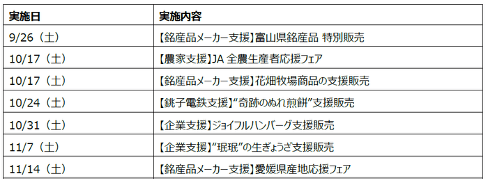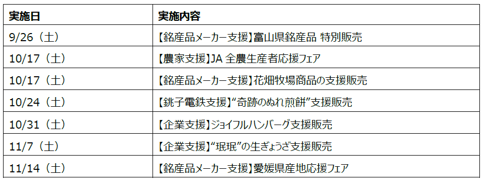 【当社で9月以降に取り組んだ応援・支援企画の一部内容】