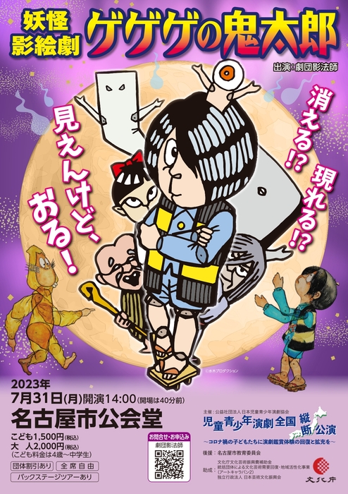 株式会社劇団影法師 妖怪影絵劇『ゲゲゲの鬼太郎』【名古屋公演】が2023年7月31日 (月)に名古屋市公会堂 大ホール(愛知県名古屋市昭和区鶴舞1-1-3)にて上演されます。