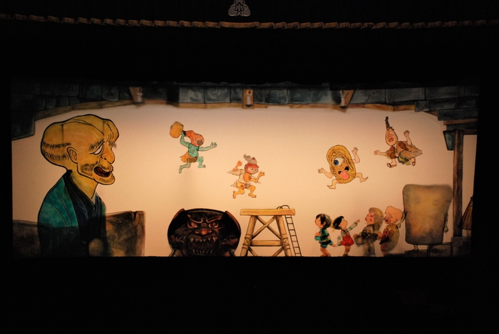 水木しげるさんの「ゲゲゲの鬼太郎」は誰もが楽しめる演目です。妖怪たちが4m×7mのスクリ-ン内を飛びまわり、消えたと思ったら出てくる世界無形文化遺産・中国伝統影絵・皮影戯(ピーインシー)で上演されます。