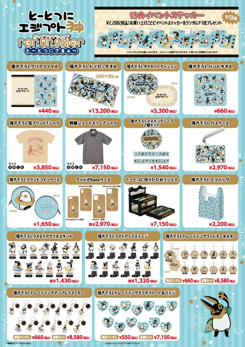 このイベントのために新規で描き下ろされたイラストの商品をはじめとして、エジプト神たちのかわいらしいグッズを多数販売いたします。