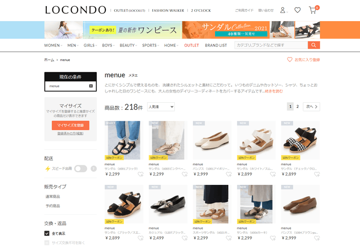 パンプス、ブーツ、サンダルなど長く使えるベーシックデザインから、トレンドシューズまでインターネット販売ならではの品揃えの良さが特徴です。
