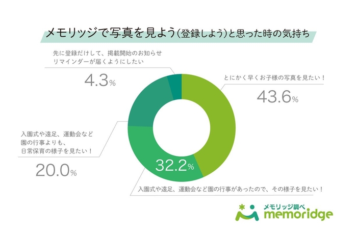幼稚園・保育園・認定こども園・小学校他における写真や映像の撮影・販売を行うリンクエイジ株式会社(本社:大阪府大阪市、代表取締役社長:藤田 俊)は自社で運営する『memoridge』 会員様のアンケートを実施しました。