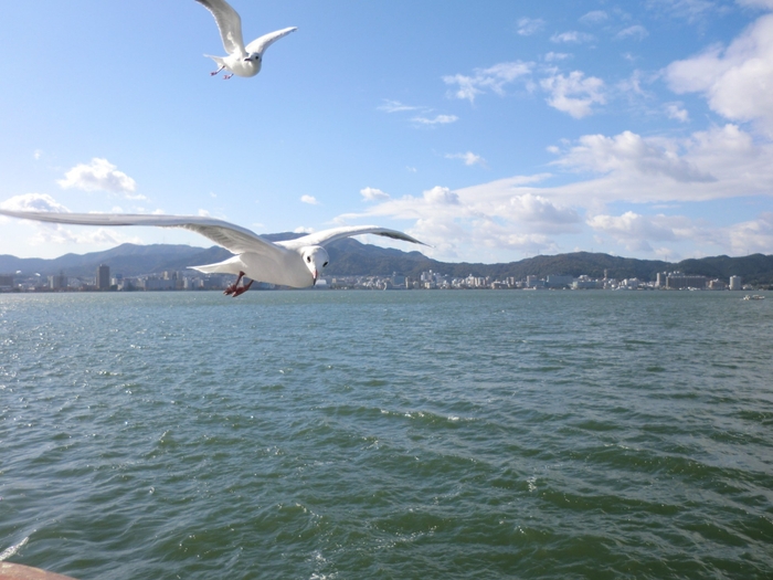 高速船「ランシング」で、比叡山やおごと温泉、琵琶湖大橋など南湖の名所をご覧いただけるほか、シベリアから飛来する冬の渡り鳥、ユリカモメを間近で観察することができます。