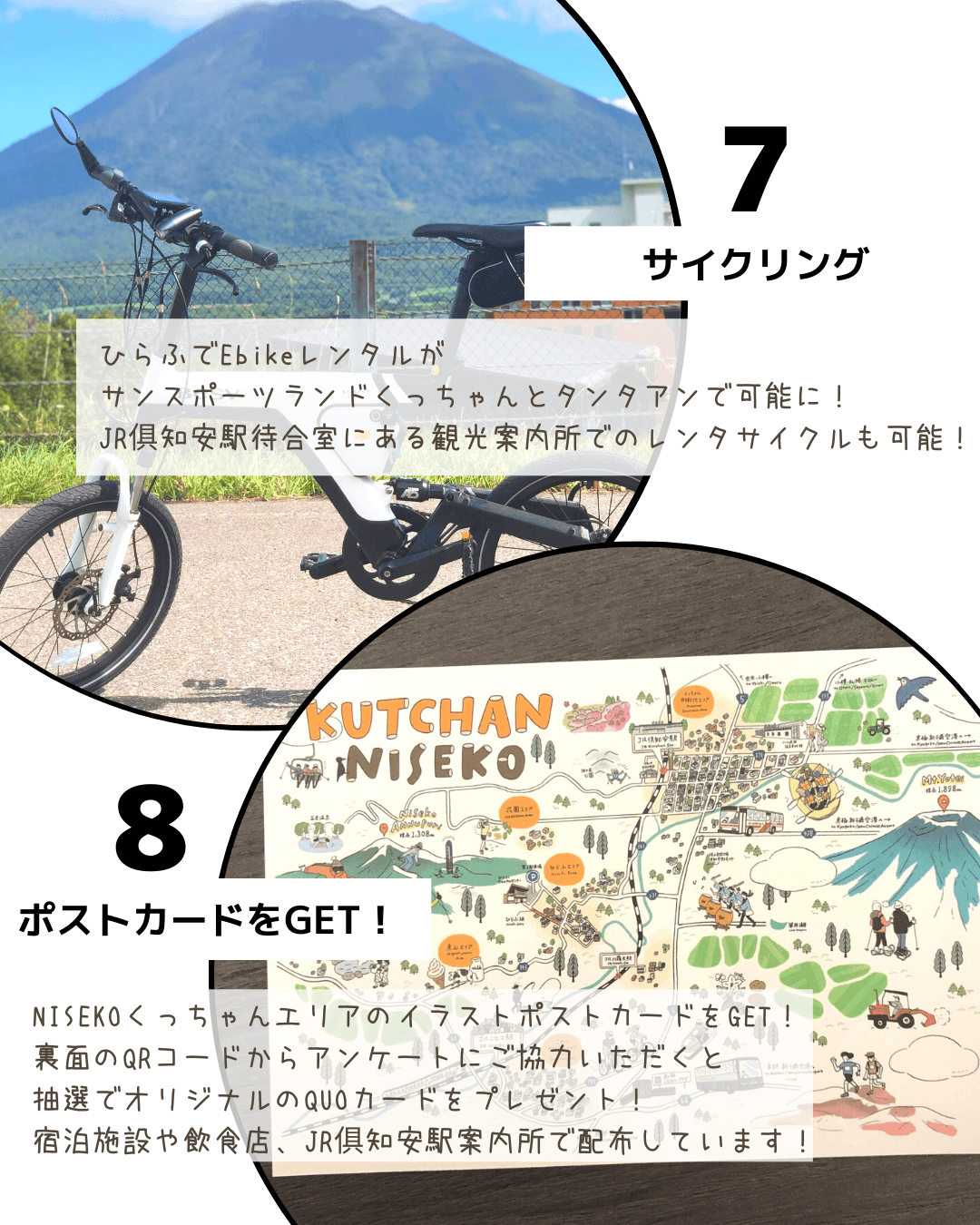 NISEKOくっちゃんエリアのイラストのポストカードを配布しております。(~10/31まで)裏面のQRコードからアンケートにご協力いただくと抽選でオリジナルQUOカードをプレゼントします。