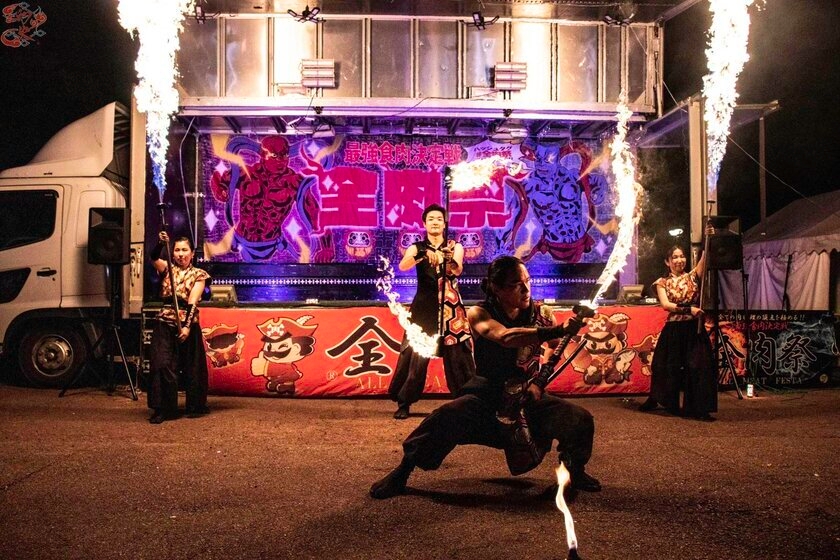 アイドル生ライブや迫力満点のファイヤーパフォーマンスも