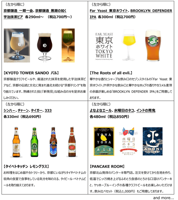 ・「京都醸造」「サッポロビール」などの4ブランドがおすすめする銘柄が楽しめる特設ブースが登場