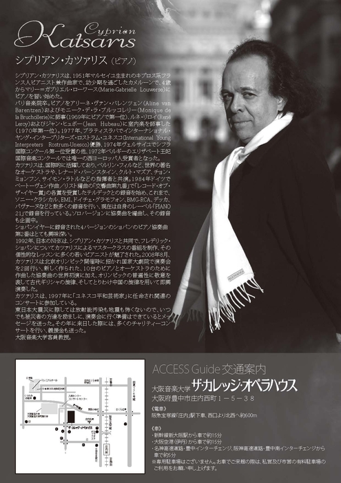 1951年、フランスのマルセイユで生まれたキプロス系のフランス人、シプリアン・カツァリス、日本ではEテレ(NHK教育テレビ)「 ショパン を弾く」への出演で広く人気を博しました。演奏家生活50年を越えなお現役、円熟を究める名手です。