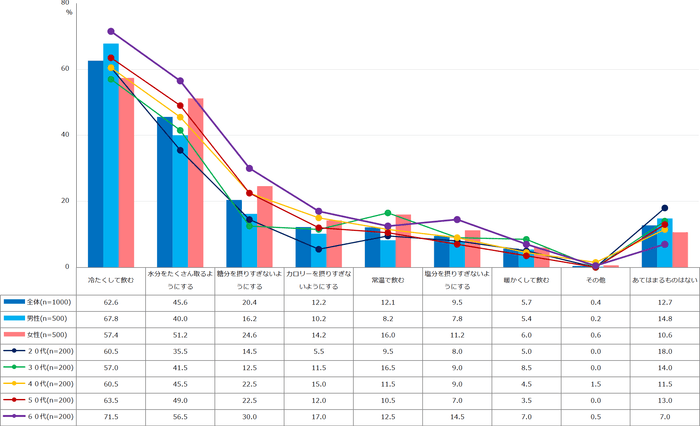 ●夏の飲み物で工夫していること、気にしていることは「冷たくして飲む」