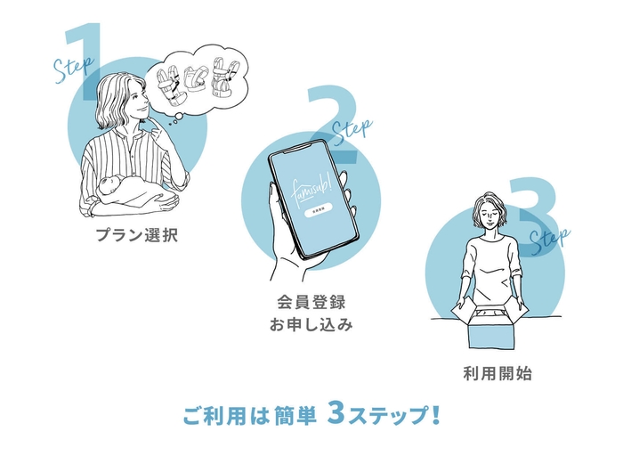 今回、当社では、新品をご提供することで購入時と変わらない感覚で気軽に試せるサブスクリプションサービスを開始いたしました。気になる抱っこひもを実際に使用した上で購入を検討できます。定価から差額のお支払いで購入可能のプランを用意しており、購入で迷われている方も安心してご利用いだけます。