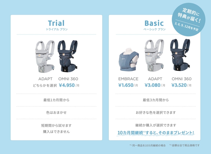 ・3、6、9、12月(※)に抱っこひものアクセサリーなどが届く特典があります。(※予定)