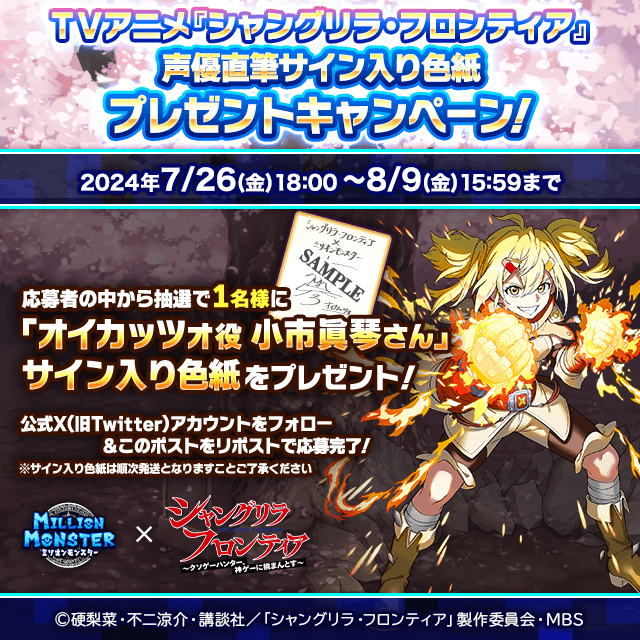 『ミリオンモンスター』×TVアニメ『シャングリラ・フロンティア』コラボ概要