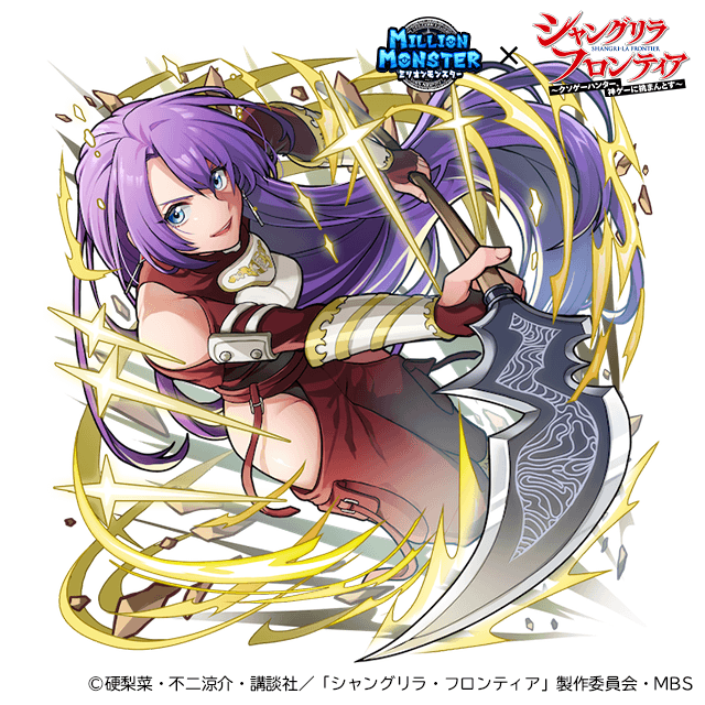 株式会社EX(所在地:東京都渋谷区、代表取締役:小野 順季)は、iOS/Android端末用スマホRPG『ミリオンモンスター』において、人気TVアニメ『シャングリラ・フロンティア』とのコラボを2024年7月26日(金)から8月9日(金)まで開催いたします。