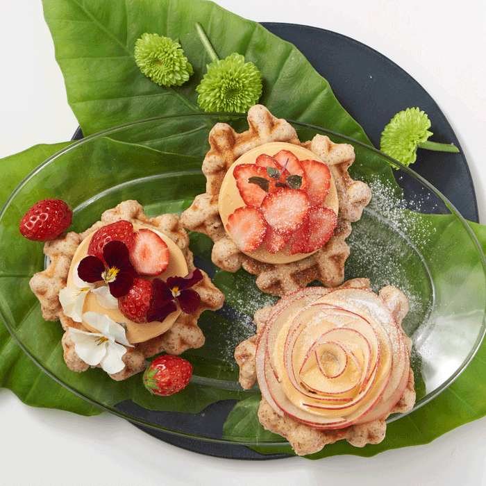 発売と同時に人気アイテムに仲間入りしたリエージュ風ワッフル。そのまま食べてももちろん美味ですが、プリンをのせるとしっとり甘いスイーツに変身。旬のフルーツで彩れば春夏秋冬をお楽しみいただけます。