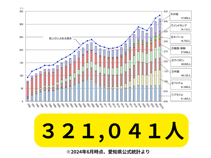 ※出典:愛知県公式統計より (https://www.pref.aichi.jp/soshiki/tabunka/gaikokuzinjuminsu-2024-6.html)