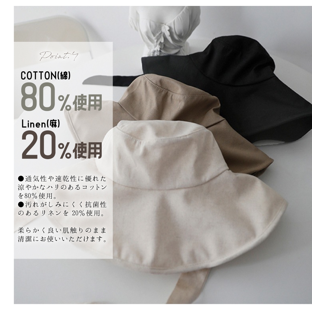●つばの長さが12センチとゆったりしているため顔だけじゃなく首元までしっかり守ります。