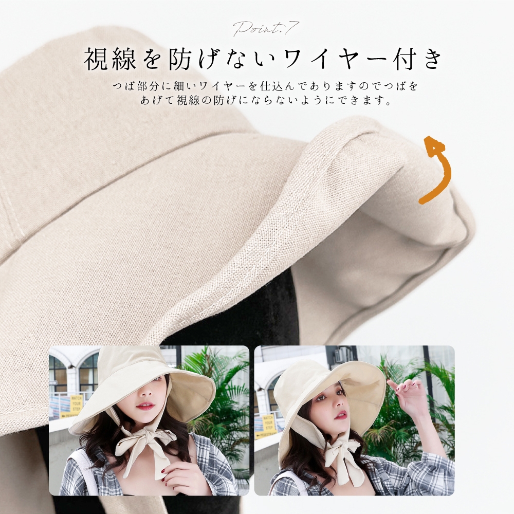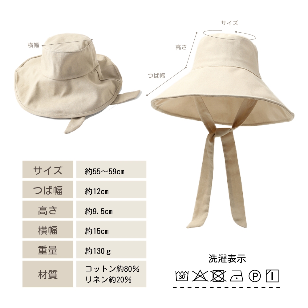 商品名 : UVカット率99%つば広帽子