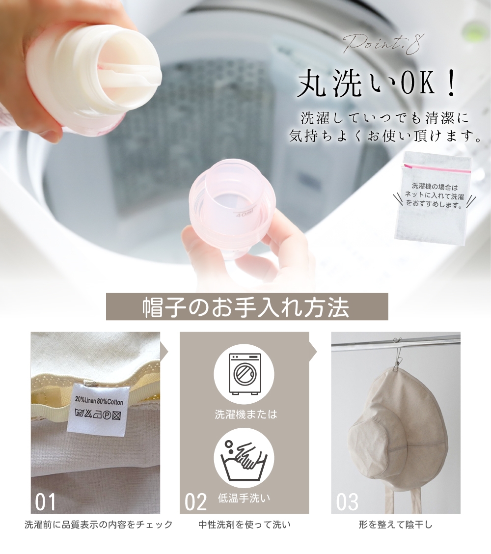 ●素材には綿と麻を使用しており肌触りが良く、丸洗いしていつでも清潔にお使いいただけます。