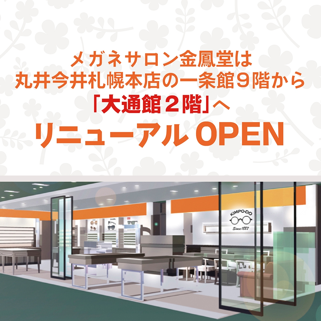 明治20年創業、今年で137年の歴史を持つ眼鏡店・株式会社金鳳堂(東京都港区、代表取締役社長:筒井嘉一)は、4月29日(月・祝) に丸井今井札幌本店一条館9階 メガネサロン金鳳堂を大通館2階へ移転オープンします。