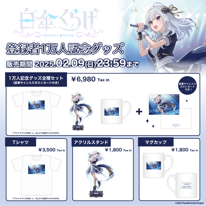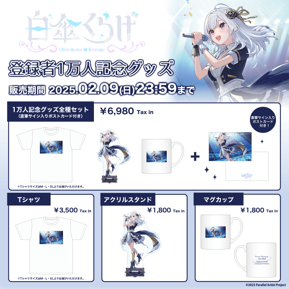 株式会社ClaN Entertainment(本社:東京都港区、代表取締役社⻑:⼤井 基⾏、以下ClaN)は、運営を⼿がける「ぱらすと!」所属のタレント、「白傘くらげ」の登録者1万人記念グッズを、2025年1月27日(月)17:00から2月9日(日)23:59までの期間限定で公式BOOTHにて発売することをお知らせします。