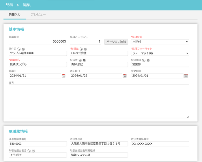 ・用途など企業ごとの仕様に合わせて見積書のレイアウトやフォームの入力項目を自由度高く設定できます