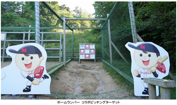 六甲山アスレチックパークGREENIAのyahhoy(バラエティアスレチック)エリアに設置しているアスレチック「白熱!坂道ピッチング」が「ホームランバー&フィッシャーズ」のコラボレーション仕様になります。