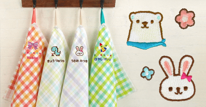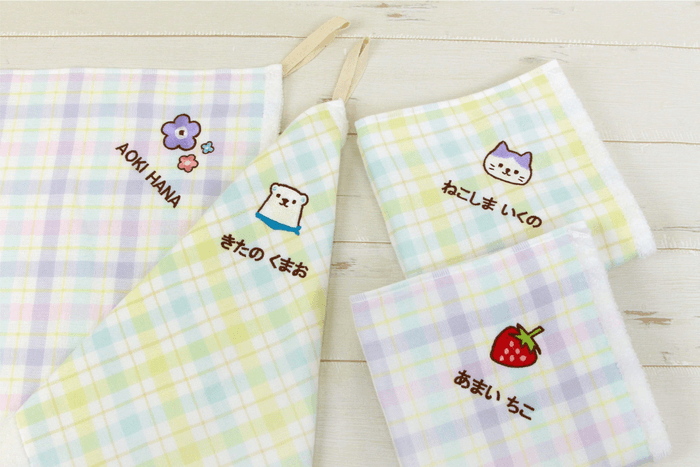 保育園・幼稚園生活につかう名入れループタオルに「キュートな人気イラスト」が仲間入り。ナチュラルで甘すぎないガーゼ&無撚糸タオルにリニューアル!入園準備に。