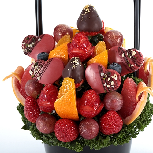 大人っぽいデザインと、ストロベリーフレーバーのハートチョコが話題の新作フルーツブーケです。
