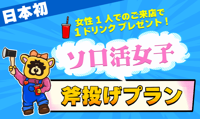 「ソロ活女子斧投げプラン」とは、積極的に一人の時間を楽しむためのソロ活を満喫してる女子へ新たなソロ活手段として「斧投げ」を提案するプランです。