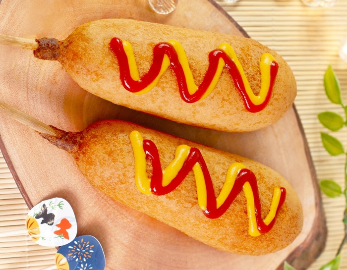 商品特徴:カリッと揚げたほんのり甘い衣に相性抜群のソーセージを包んだみんな大好きなお祭り屋台の定番!