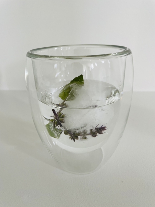 白砂糖不使用、企業秘密のレシピでつくるホーリーバジルのシロップを電解水素水ベースの炭酸水で割り、一つずつ丁寧に手で摘み取ったホーリーバジルの花穂を閉じ込めたアイスボールを浮かべています。淡いピンク色が美しく、目にも美味しい一品。ホーリーバジルシロップの風味を楽しんだ後は、さらに電解水素水の炭酸水をご提供、アイスボールが溶けてゆくとともに、フレッシュホーリーバジル独特のスパイシーな香りと甘い香りの心地よさですっきりとした味わいが引立ち、ホーリーバジルそのものの風味が楽しめるリフレッシングドリンクです。