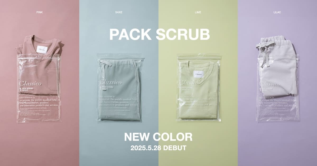 人気スクラブ「PACK」シリーズに新色が登場!:メディカルアパレルブランド「クラシコ」