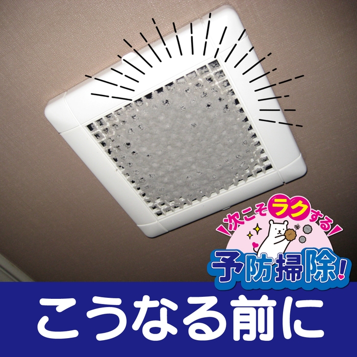 トイレや脱⾐所・お⾵呂の天井や壁⾯にある換気扇に貼ることで、汚れを防⽌するホコリとりフィルターです。