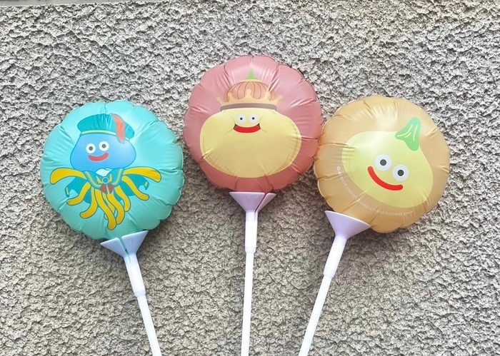 制作したスライムの写真に「#MYスライム」を付けてSNSへ投稿された方に、「ドラゴンクエスト アイランド」のオリジナルモンスターである「ホミロット4世」、「たまねぎキング」、「たまねぎスライム」が描かれた手持ちバルーンをプレゼントいたします。(手持ちバルーンは、デザインごとにそれぞれ数に限りがあります。なくなり次第終了となります)
