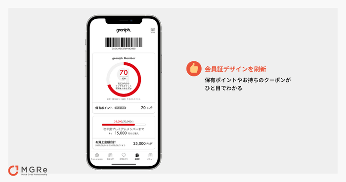 アプリの特徴2:会員証デザインを刷新。獲得ポイント・クーポン情報が一目瞭然