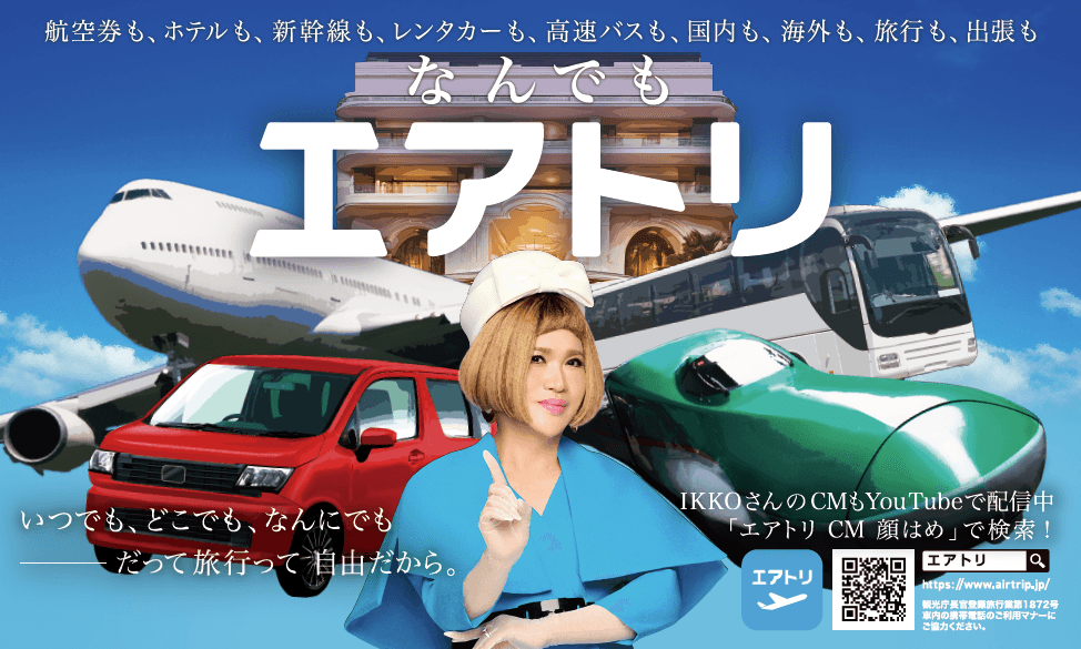 ITの力で、エアトリ旅行事業、ITオフショア開発事業、訪日旅行事業・Wi-Fiレンタル事業、メディア事業、投資事業(エアトリCVC)、地方創生事業、クラウド事業、クリエイティブソリューション&DX事業、マッチングプラットフォーム事業、CXOコミュニティ事業、法人DX推進事業・ヘルスケア事業(投資先にて注力)、人材ソリューション事業(投資先にて注力)、AIロボット事業(投資先にて注力)、ゴルフライフサポート事業(投資先にて注力)、外貨自動両替機事業(投資先にて注力)と町家宿泊・日本文化体験事業(投資先にて注力)を含む全16事業を手掛ける株式会社エアトリ(本社:東京都港区、代表取締役社長 兼 CFO:柴田 裕亮、証券コード:6191、以下当社)は、更なる認知拡大ならびにエアトリブランディング強化のため、引き続き各種プロモーションを実施してまいります。