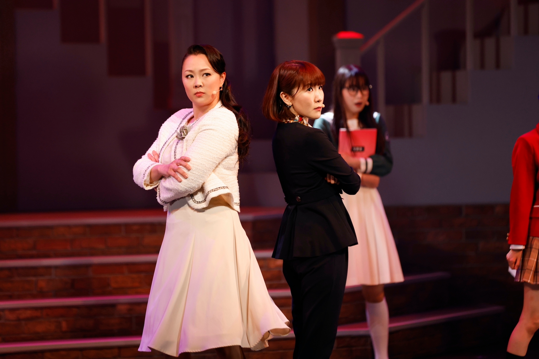 新キャストが多い滝桜女学院メンバーのシーンでは、新キャストによる芝居のアプローチの変化を受けてオリジナルキャストの芝居も変化したのか、新たな発見があったシーンがいくつもあった。11日出演キャストのゲネプロのなかでは、新キャストの西田有愛が演じる来栖トアは、これまで以上にアンズへの憧れを感じさせ、第一幕序盤のアンズとのかけあいも先輩・後輩の絆が増しているように思えた。西田ひらりが演じるサヤカは爽やかな笑顔が印象的で、第二幕序盤の若槻ミスズ(演:西葉瑞希)や鈴賀レナ(演:三田美吹)と話すシーンでは、同級生同士ならではの気さくさが過去の公演よりも感じ取れた。